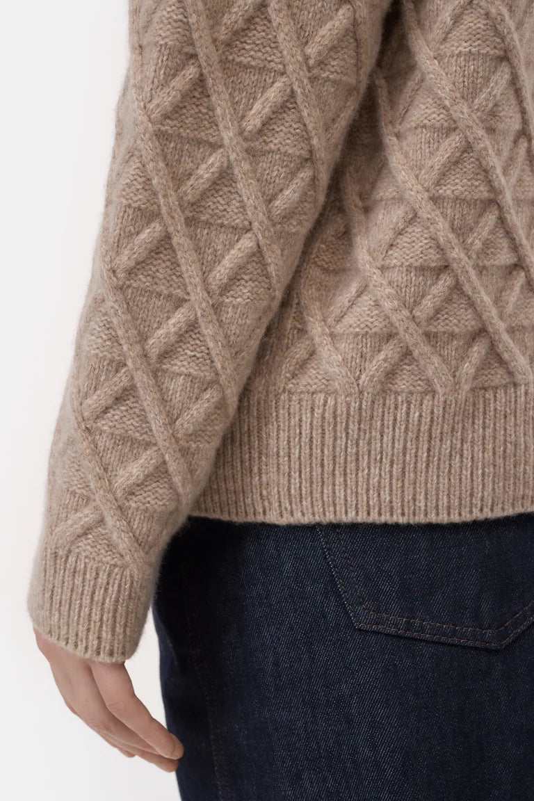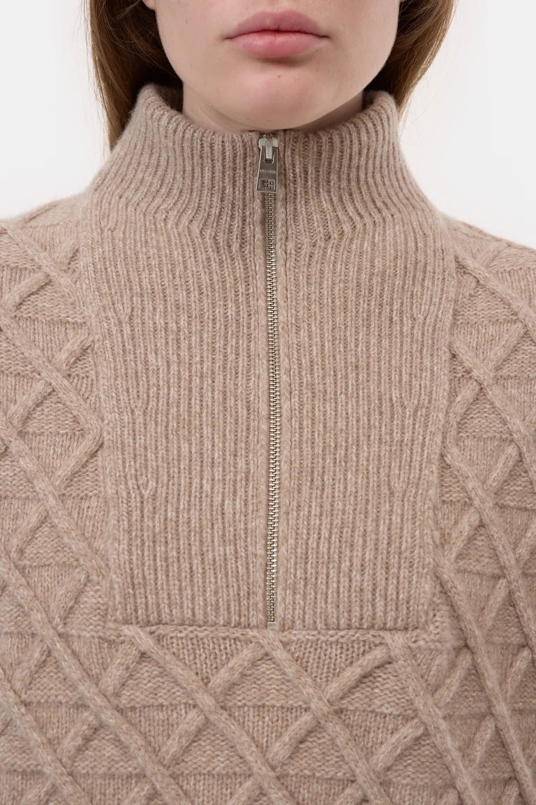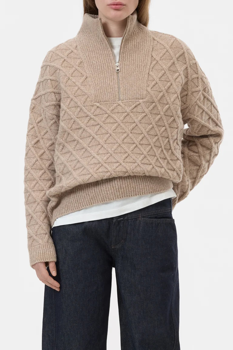 Our soft, regular-fit troyer knit is made from pure lambswool. The Italian mouliné yarn creates a subtle multi-coloured effect. This season, we updated our classic design with a special basket-weave texture. The knit features a high collar with a zip and ribbed trims.
