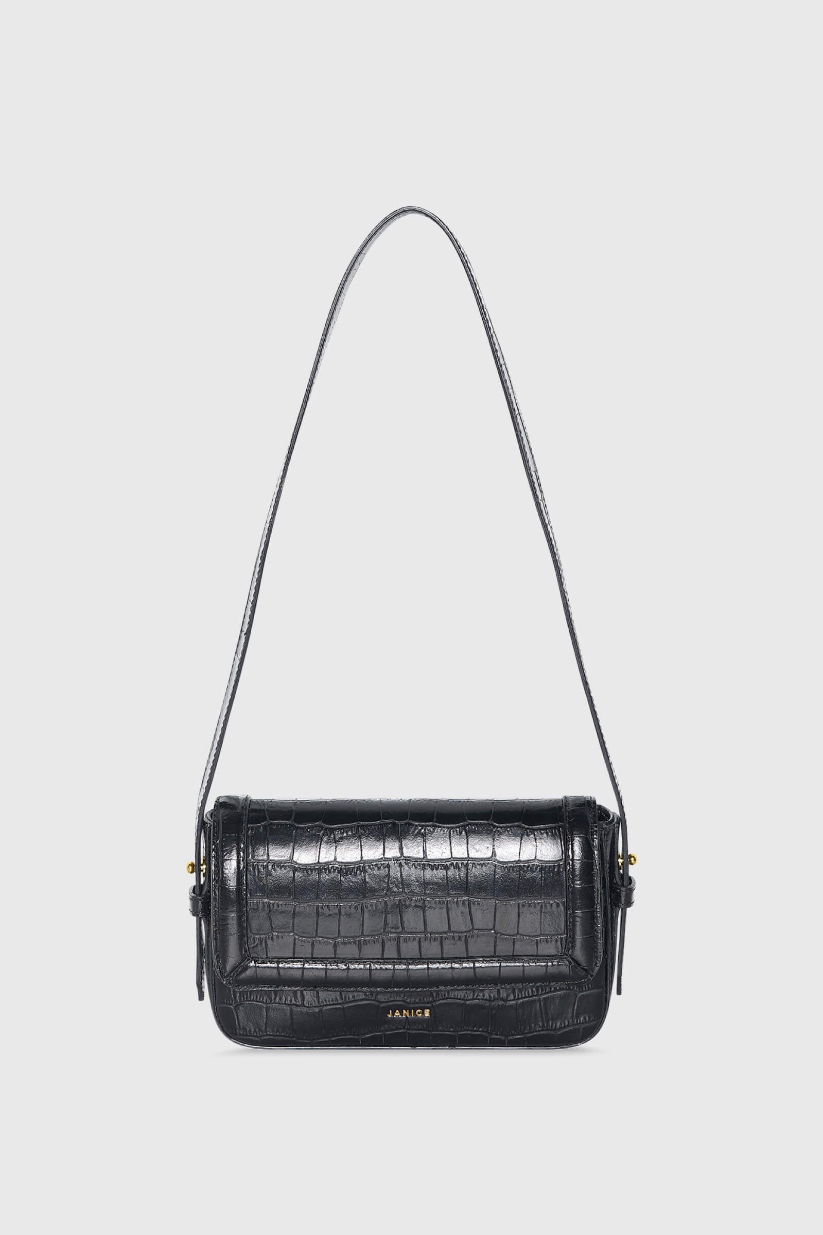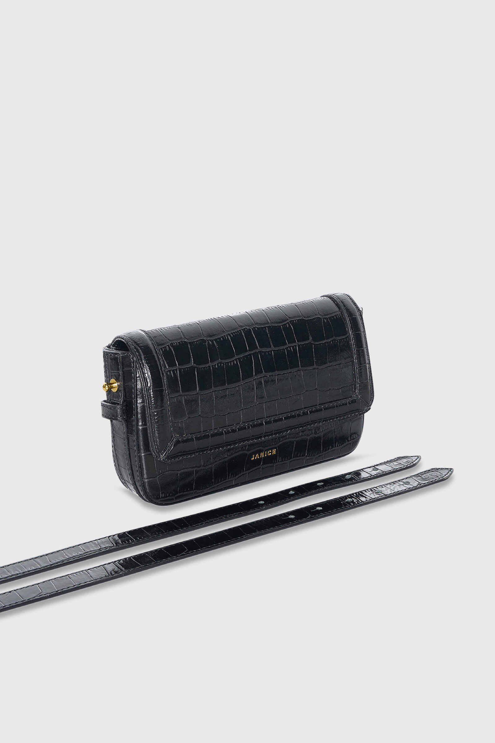Ontdek de kracht van luxe materialen met de BRETT zwart croco tas van JANICE op www.janiceofficial.com
