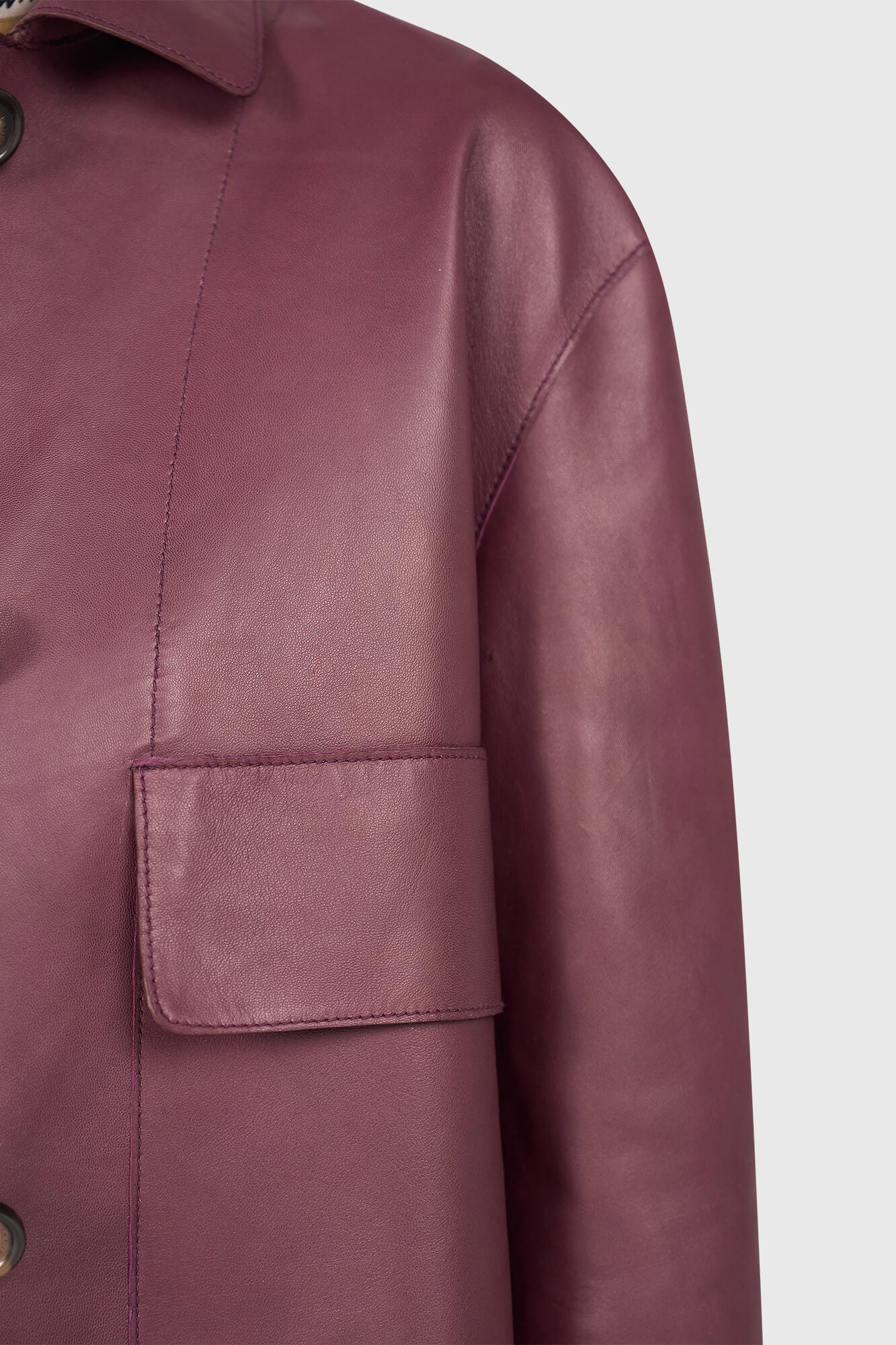 De zorgvuldig aangebrachte details tillen het jasje naar een hoger niveau. De grote, opgestikte zakken aan de voorzijde zijn niet alleen praktisch, maar geven het jasje ook een subtiele utility-uitstraling. De knopen sluiten het geheel stijlvol af, terwijl de klassieke kraag zowel open als gesloten gedragen kan worden voor een andere look. De kwaliteit van het leer is direct voelbaar: soepel, zacht en tegelijkertijd stevig genoeg om jarenlang zijn vorm en uitstraling te behouden.